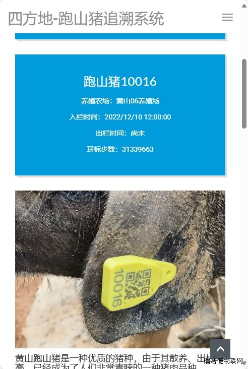 瑞浩德跑山猪养殖追溯系统